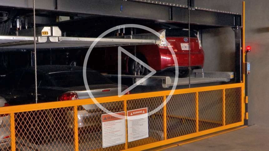 In a process that takes less than a minute, residents dial in a code to retrieve their vehicle.