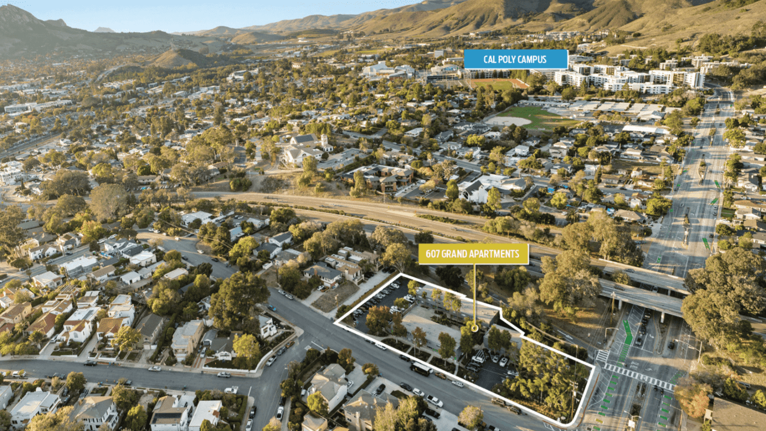 607 Grand Avenue is a 20-unit student housing community accessed directly from Grand Avenue and located just 0.4 miles from the Cal Poly campus, offering exceptional proximity that is easily reachable by car, bike, or on foot. Its direct approach via a primary arterial and immediate closeness to campus support strong and consistent student rental demand, positioning the property as a highly competitive housing option within Cal Poly’s constrained off-campus market.